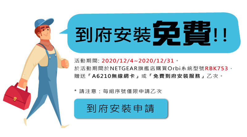 Orbi指定套裝 即贈 到府安裝 & A6210網卡 好禮2選1
