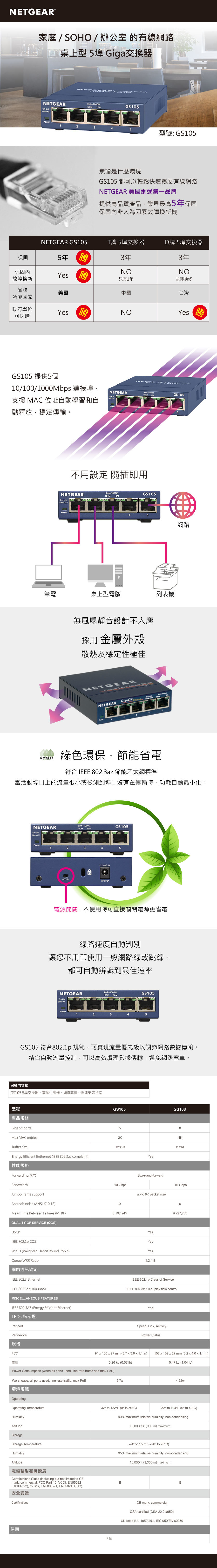 ★ 5個 10/100/1000Mbps GIGA 網路埠