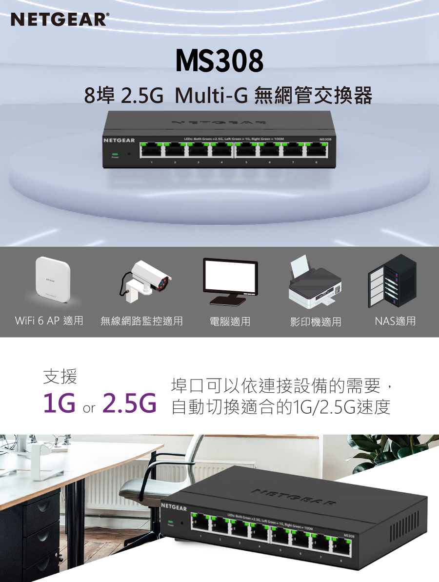 ★ 提供 8個 1G/2.5G Multi-G 連接埠