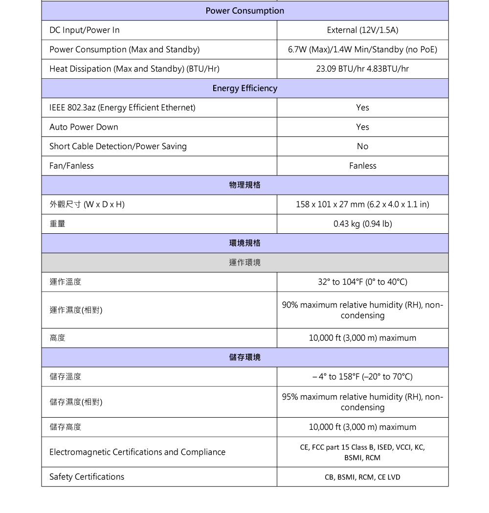 ★ 節能乙太網(IEEE 802.3az)支援,實現最大功率節省