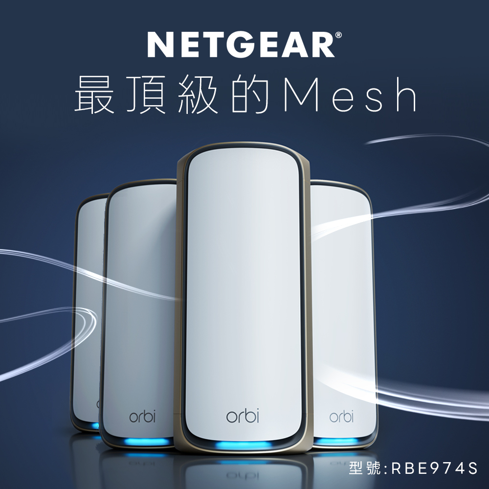 NETGEAR Orbi RBE974S BE27000 四頻 WiFi 7 Mesh 延伸系統 路由器+3衛星 (星盾白)