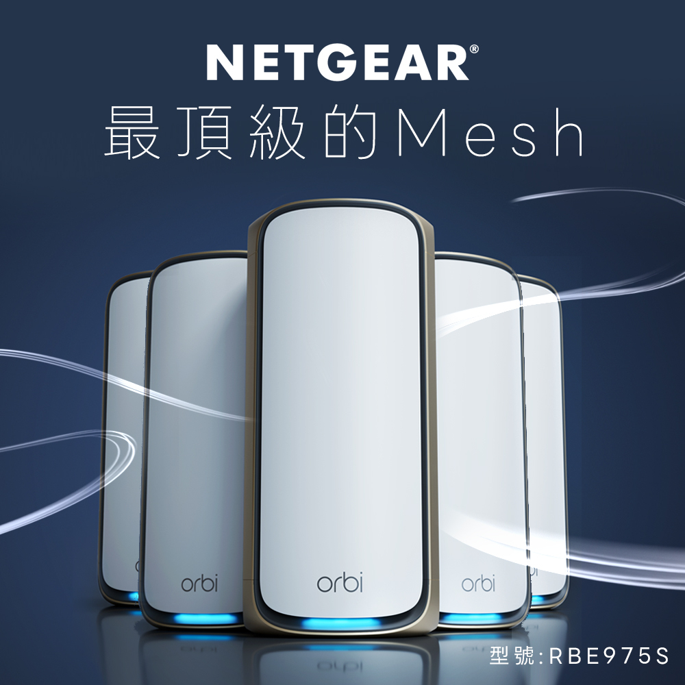 NETGEAR Orbi RBE975S BE27000 四頻 WiFi 7 Mesh 延伸系統 路由器+4衛星 (星盾白)