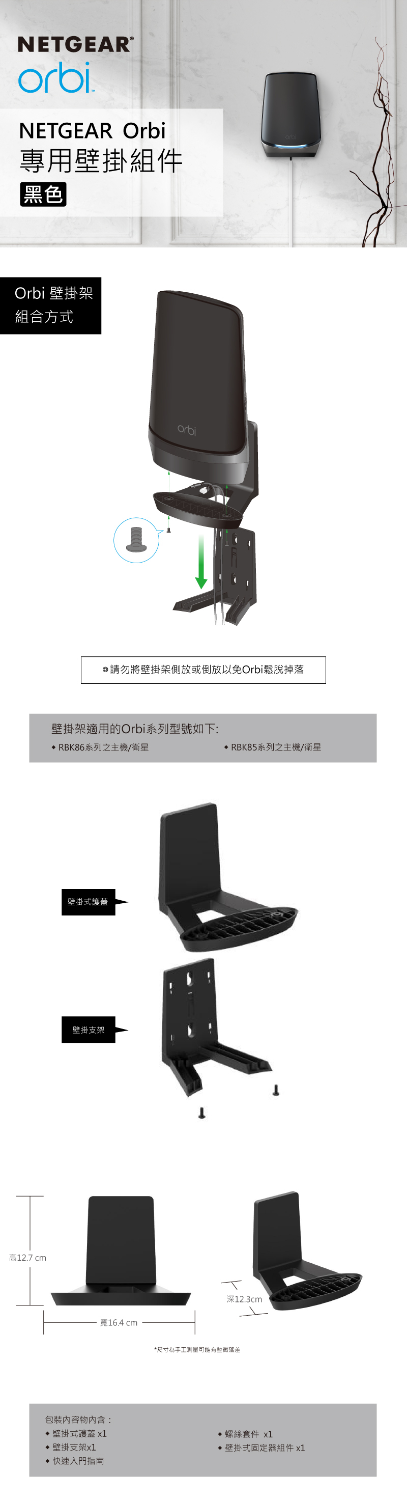 壁掛架適用的Orbi系列型號如下: