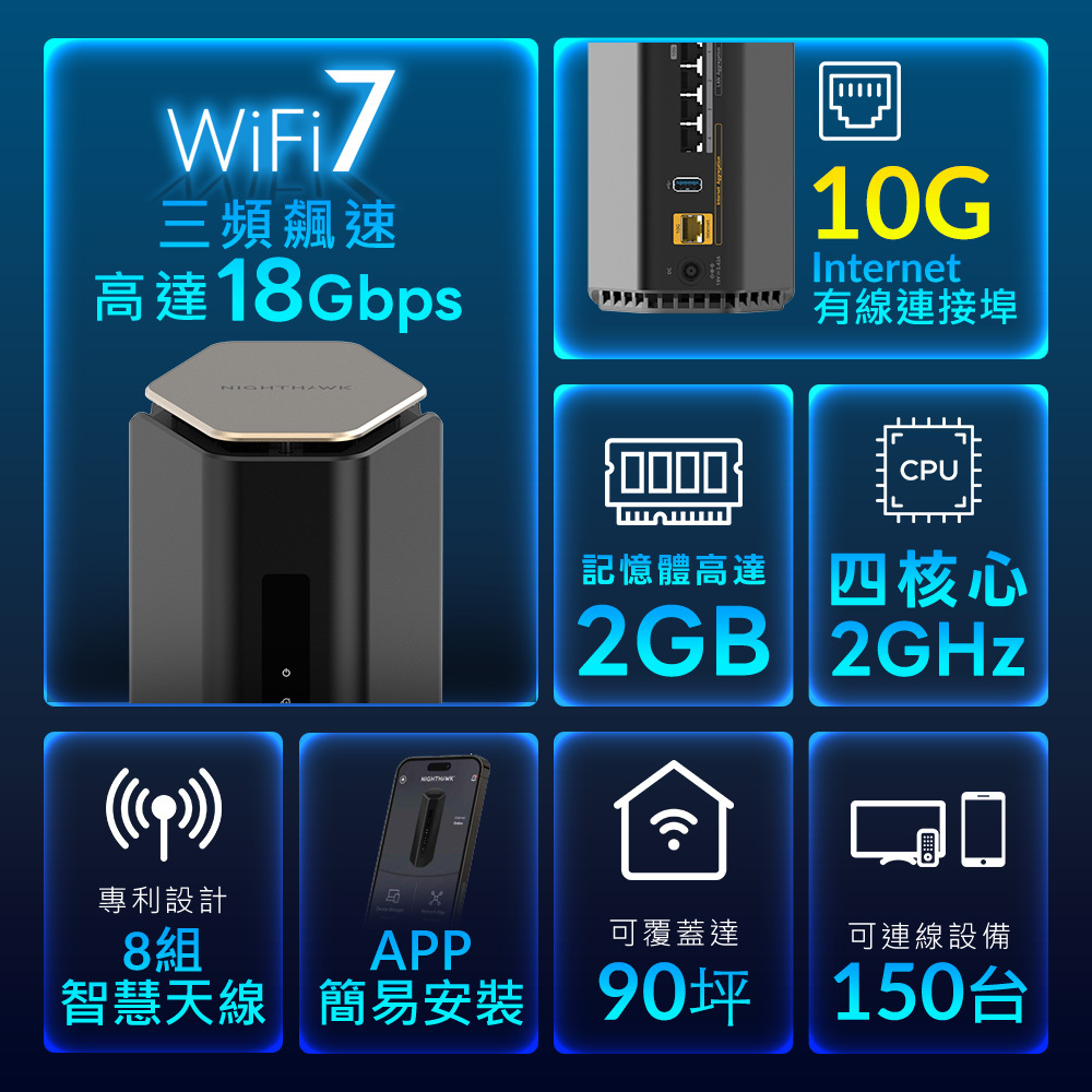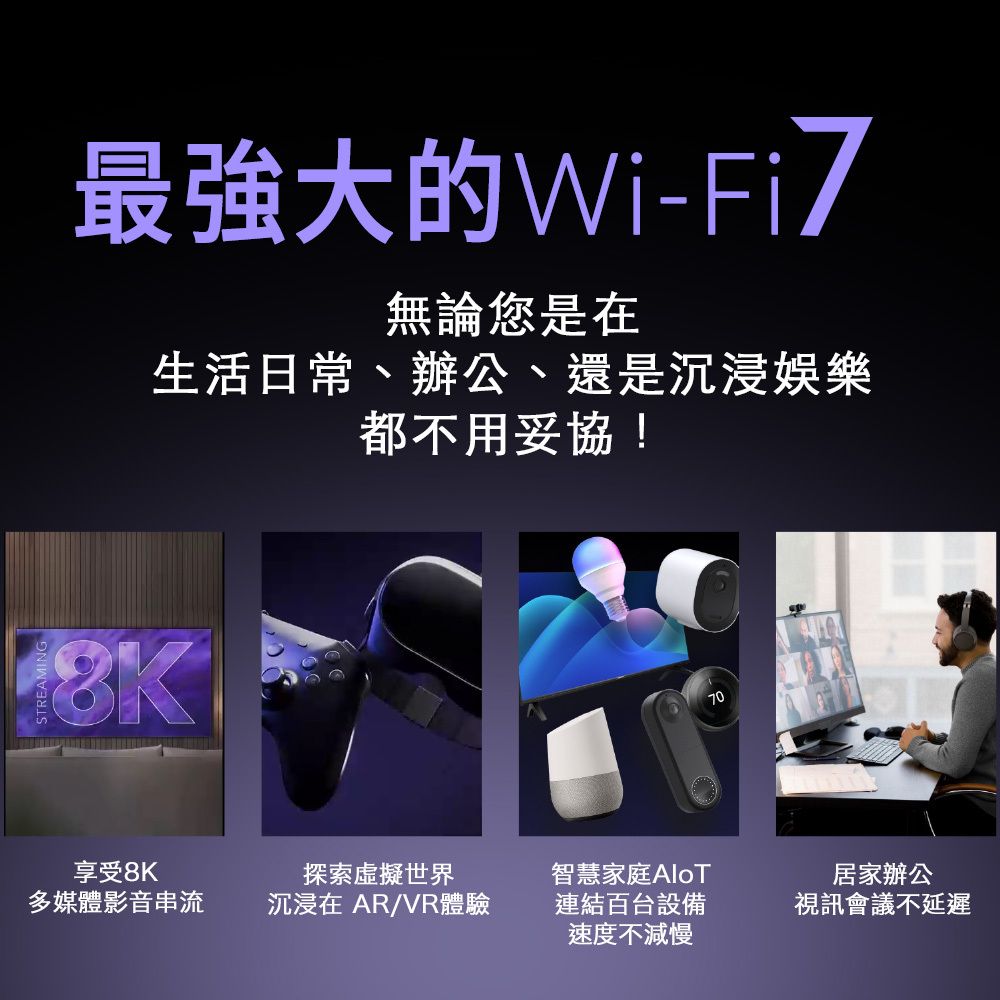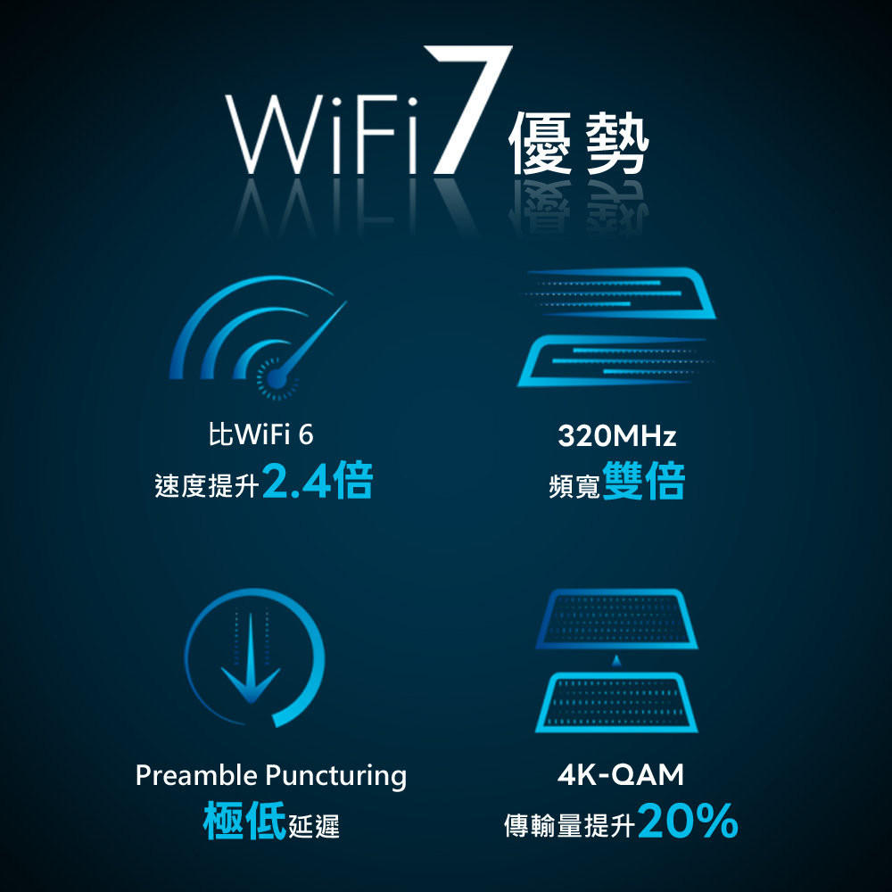 ✅最新技術│Wi-Fi 7技術,三頻飆速高達18Gbps